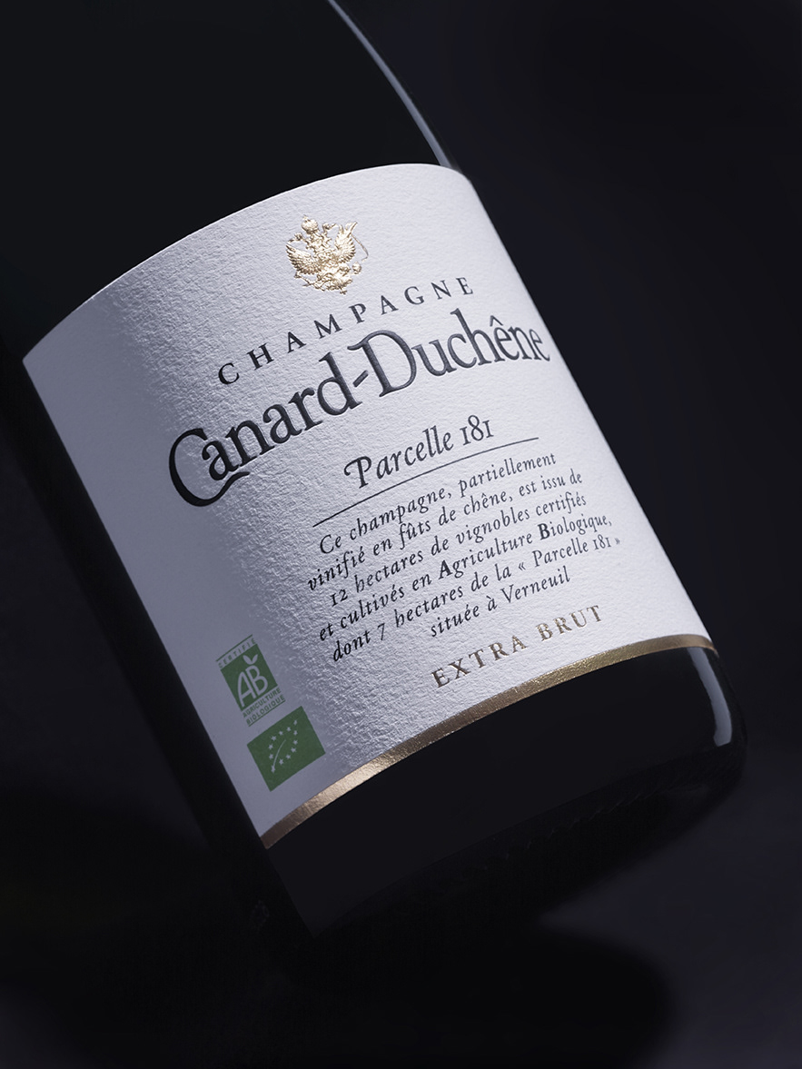 Conception du packaging "Parcelle 181 ouvre de nouvelles perspectives et favorise l'Agriculture Biologique tout en continuant à faire valoir l'excellence de nos Champagnes sur un style original." Laurent Fédou, Chef de Caves Canard-Duchêne